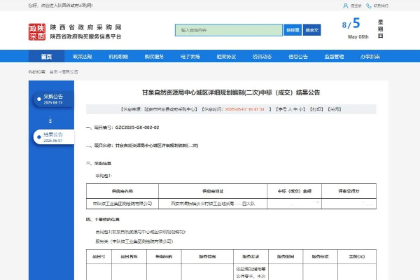 [2025-05-09]新環(huán)境激發(fā)新動(dòng)能 新戰(zhàn)果開啟新篇章中陜核工業(yè)集團(tuán)測(cè)繪院有限公...5月7日,中陜核工業(yè)集團(tuán)測(cè)繪院有限公司憑借雄厚的技術(shù)實(shí)力與優(yōu)質(zhì)的服務(wù)方案,在激烈的市場(chǎng)競(jìng)爭(zhēng)中脫穎而出,成功中標(biāo)“甘泉自然資源局中心城區(qū)詳細(xì)規(guī)劃編制(二次)”項(xiàng)目。...
